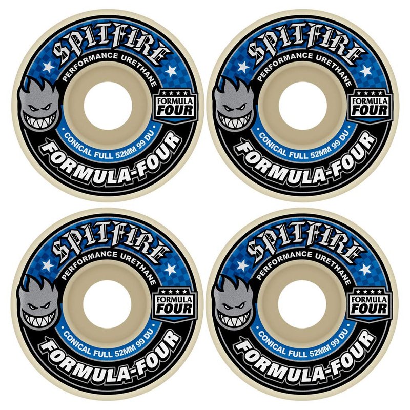 - SPITFIRE FORMULA 4 99d CONICAL FULL 53mm WHT W/BLUE Skateboard Wheels set