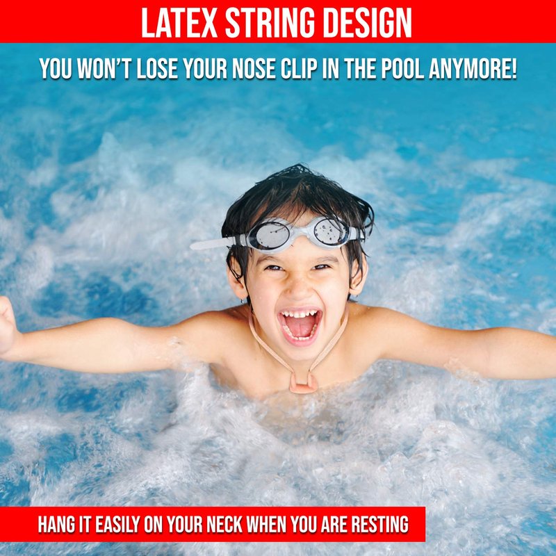 - DIVE WITHOUT FEAR: No more chlorinated water rushing up your nose when you jump into the pool! These latex strapped nose clips keep water out of nostrils so you can focus on your swim technique.