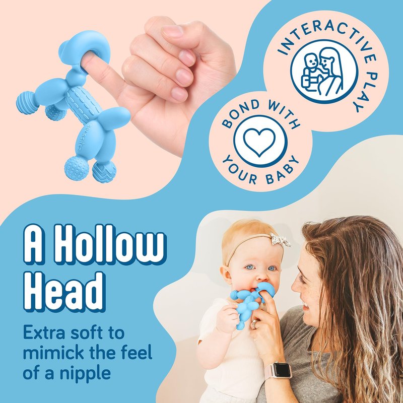 - BONDING MOMENTS TO TREASURE. The unique hollow head, where you can put your finger, mimics the softness of a nipple for the teething baby. Use the teether toys for babies 0-6 months for some gentle play and interaction that deepens your connection with your precious one