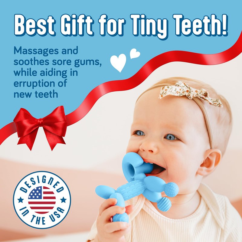 - SAFETY FOR YOUR PEACE OF MIND: 100% silicone teethers for babies, no BPA, certified as both a teether and a pacifier according to the US CPSC standards. The teething toy is hypoallergenic, durable, and easy to clean. The infant teether guards the baby’s well-being, right from day one