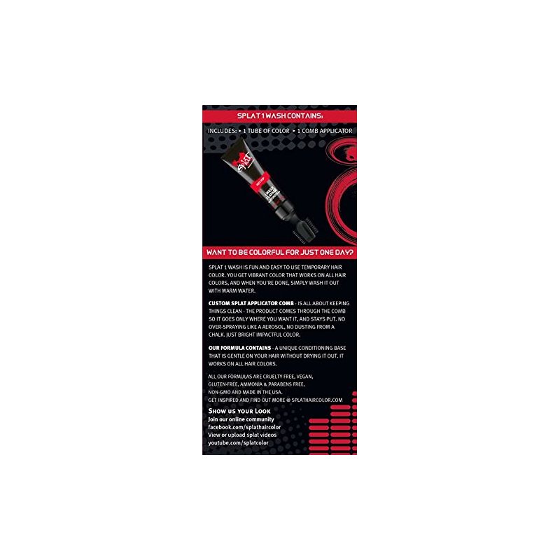 1 Wash Temporary Color by Splat is the best way to express yourself, without the commitment. This product will wash out of your hair with warm water in 1-2 washes. 1 Wash Splat Colors have a unique conditioning base that is gentle on your hair without drying it out. It works on all hair colors. All our formulas are cruelty-free, vegan, gluten-free, ammonia & parabens free, non-GMO, and made in the USA. Wash Temporary Hair Dye by Splat is the best way to express your color without the usual commitment to permanent color.