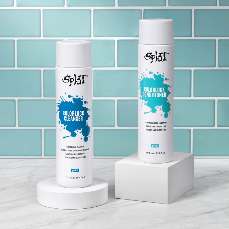 Incorporating color-safe shampoo and conditioner into your aftercare routine is the fade aid you need to prevent vibrant hair color from looking dull and drab. Splat’s Colorlock Cleanser and Conditioner are formulated to gently cleanse, condition, and protect color-treated hair without harsh sulfates or parabens. The nourishing blend of vitamins, oils, and extracts combine to leave hair stronger, manageable, and silky soft while locking in color.