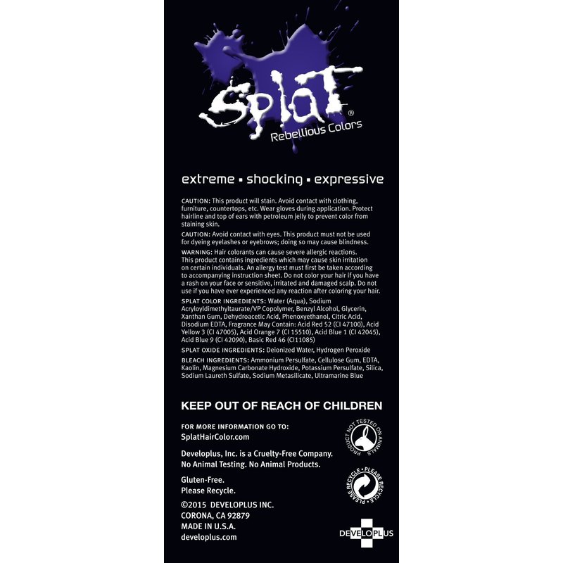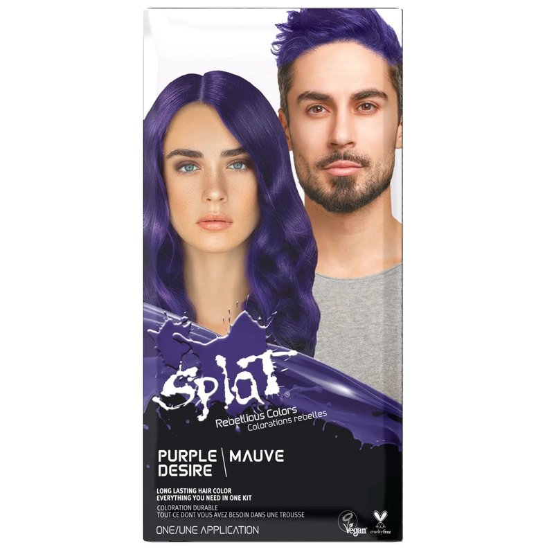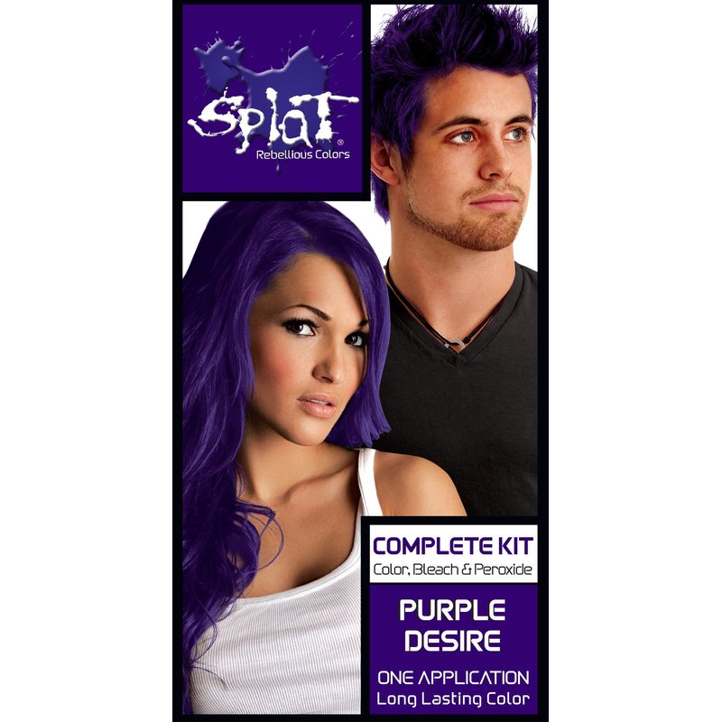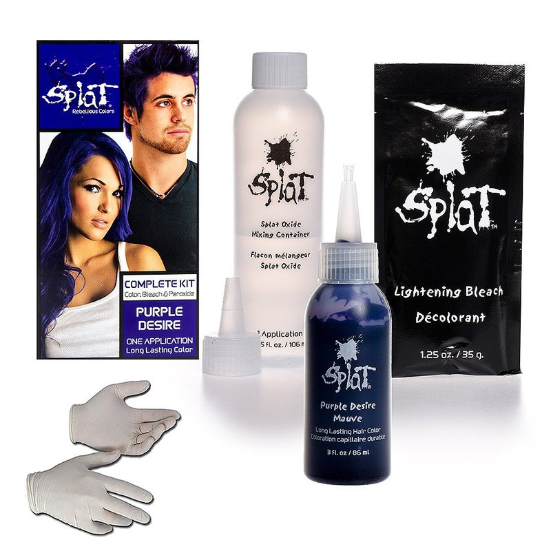 - SEMI PERMANENT HAIR COLOR KIT: Splat Purple Desire hair dye offers vibrant, long lasting bold color. Hair dye kit includes purple hair color, oxide, bleach, gloves, and instructions.