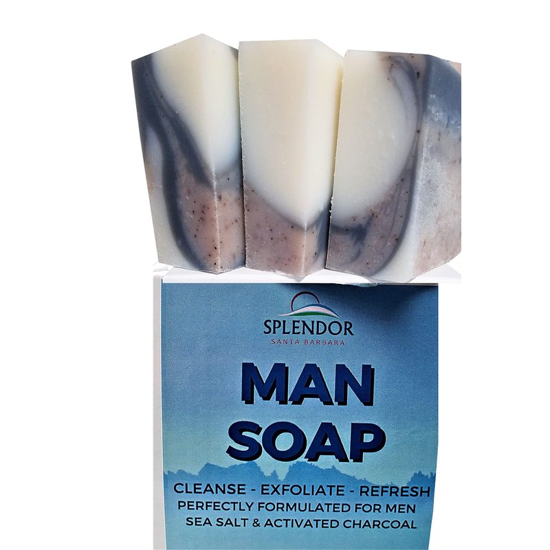 Splendor Soap for Men - Coconut Oil Bath & Body Bar Soap. Cleanse, Exfoliate, Refresh. Handmade, Vegan, Moisturizing, Activated Charcoal, Pumice and Alkanet Root