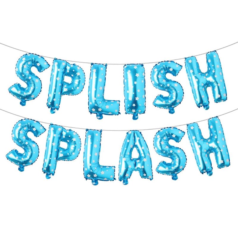 Materials: Aluminum Foil Letters: 12pcs Color: Multicolor optional Size : 16inch/pcs Package : ①SPLISH SPLASH letters x 12pcs(16Inch) ②1pcs 10m Ribbon (3.9inch) ③Plastic straw x 1pc (5.7 inch) Tip : ① The letter "B" design is special ,before inflating,it looks like the letter "C",after inflating, it is letter "B". ② All Aluminum Foil Balloons are detected by the machines , If air leak occurs while inflating, please press the inflatable hole or use tape to assist the automatic sealing of the balloon. Any problem or you need help, Kindly contact with us , we will solve it for you at once.