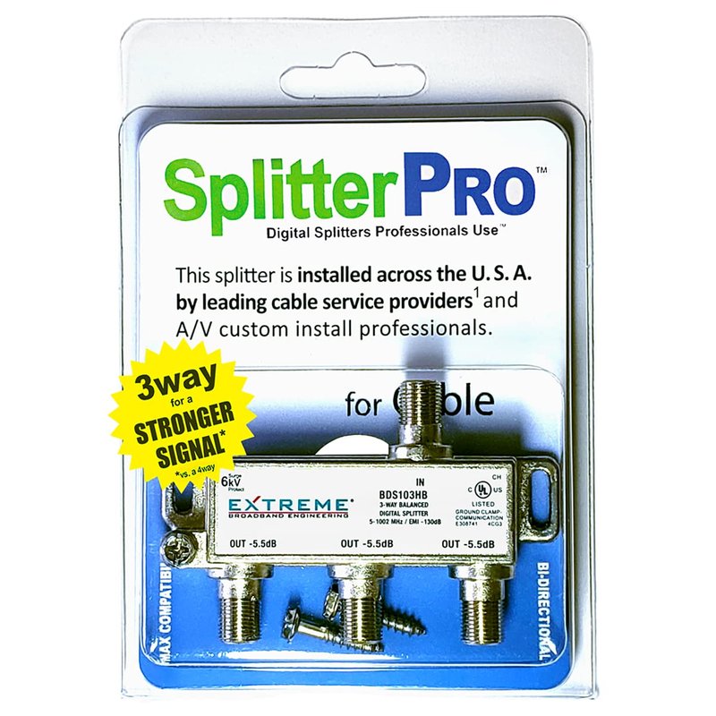 SplitterPRO - Digital Splitters Professionals Install Every Day Across The U. S. A. 3-Way Coaxial Cable Splitter, 1 GHz for HDTV/4K/8K TV, High Speed Internet (Not for Satellite Dish Connections)