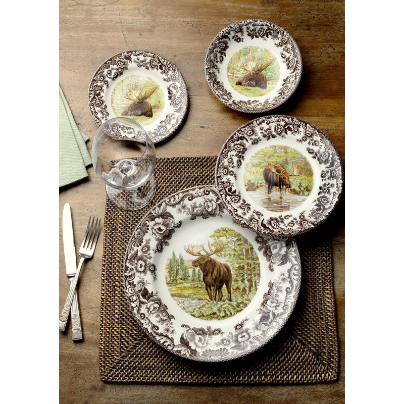 - Elevate your table setting with the Spode Woodland Salad Plate from the Majestic Moose Collection. Crafted in England from exquisite Fine Earthenware, it exudes timeless elegance for special occasions.