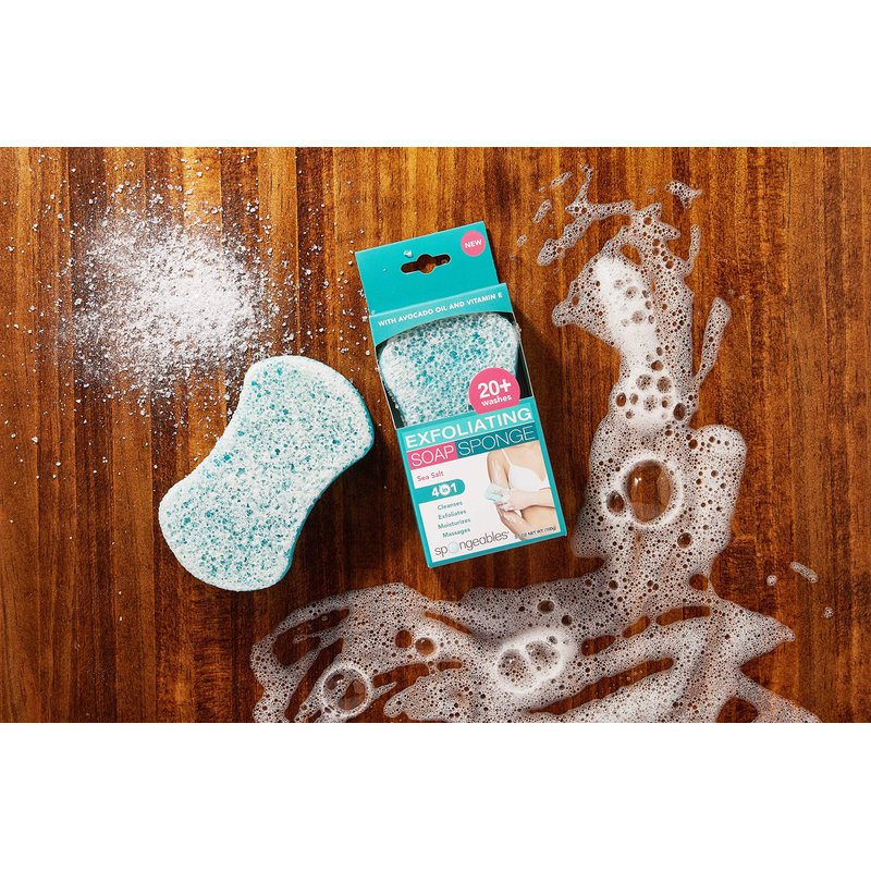 Spongeables Spongeables Exfoliating Body Wash In A Sponge, Sea Salt, Contains Avocado Oil and Vitamin E, Cleanse, Exfoliate, and Moisturize, 3.5 Oz, 20+ washes, Pack Of 1