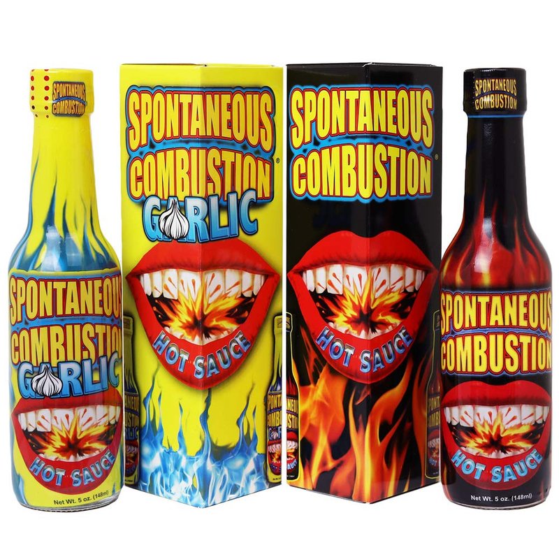 - THE ONLY SAUCE YOU’LL EVER NEED!: Spontaneous Combustion Garlic and Original Hot Sauces adds an incredible layer of flavor to meat, chicken, seafood, eggs, gravy, and vegetable dishes. Discover how Spontaneous Combustion garlic hot sauce livens up your favorite dishes and can be inspirational to invent new recipes.