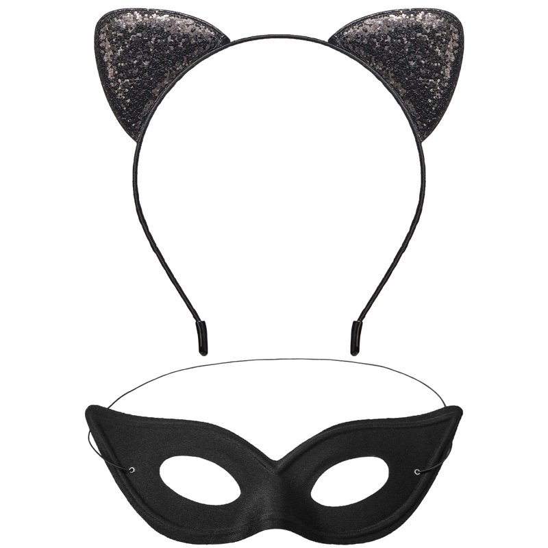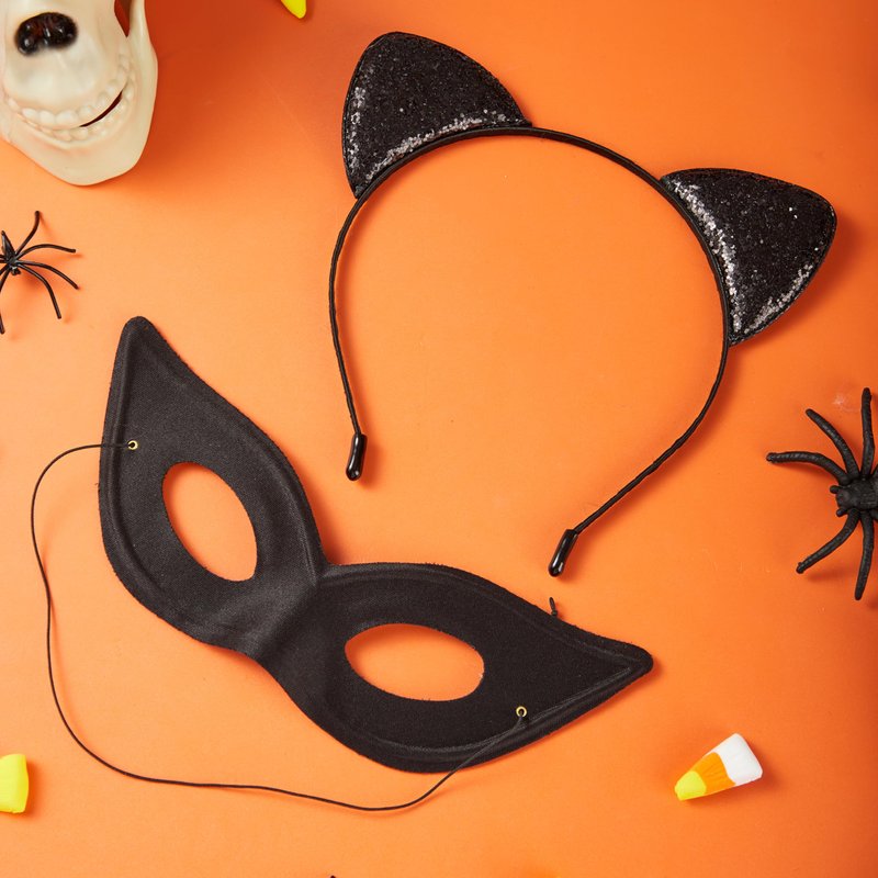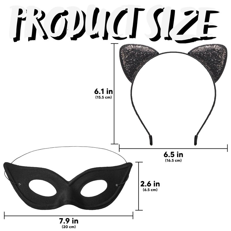 - Cute Accessory. Each package contains 2PC for black Cat mask kids costume accessories. Enhance your Halloween costume with these glitter cat ears headband and black Cat mask, ideal for creating a festive atmosphere at Halloween parties.