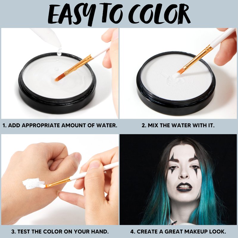- Easy To Color: The face paint offers excellent color payoff. allowing you to create bold and vibrant designs that get attention and enhance your Halloween cosplay look.Our White Face Paint is very moisturizing. ensuring a comfortable and smooth application on your skin.