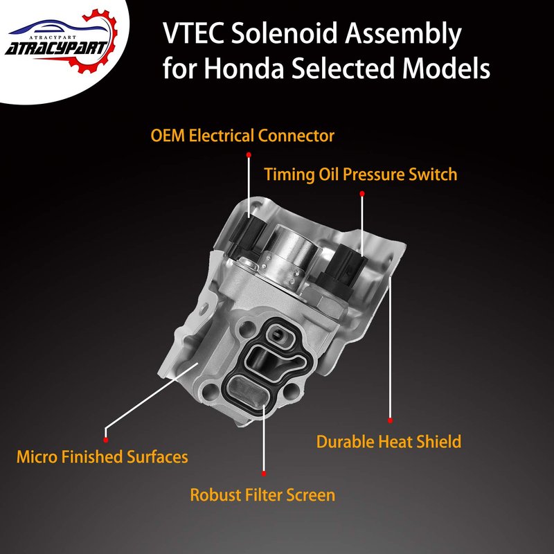 - PREMIUM QUALITY: The vtec camshaft solenoid utilizes aluminum valve bodies that are surface-treated to create micro finished surfaces for increased wear resistance, means you will get a fairly reliable solenoid assembly to perform excellently under all engine operating conditions