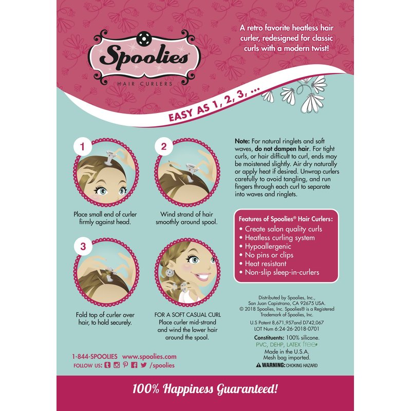 Spoolies Hair Curlers - Spoolies is a revived, heat-free vintage hair curler brand from the 1950’s that creates salon quality curls at home without the use of pins, clips, or heat. Achieve spiral ringlets, beach waves, and vintage curls with our patented hair curlers made in the USA. They can be used with straight, curly, or highly textured hair. Spoolies medical-grade silicone is heat-resistant and a hair dryer can be used to speed up the curling process.