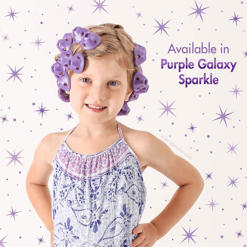 Spoolies Original Hair Curlers, Heatless Silicone Rollers with Mesh Bag Gift for Natural Hair, Hair Extension plus Wigs, Made in USA, 15 Jumbo Size (Purple Galaxy)