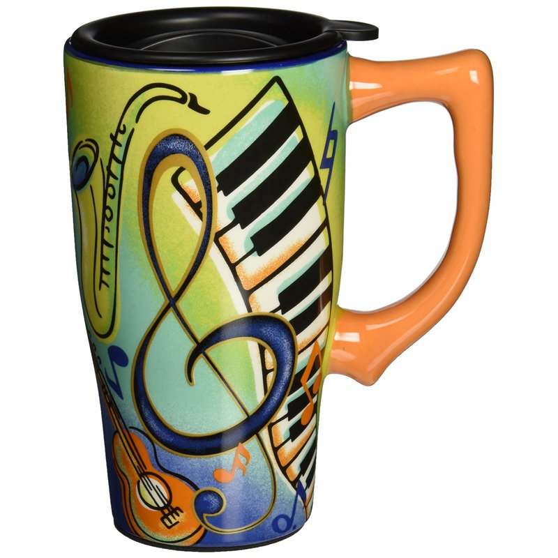 Spoontiques - Ceramic Travel Mugs - Music Cup - Hot or Cold Beverages - Gift for Coffee Lovers