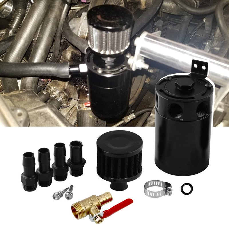 【 Reusable Constantly with Drain Valve 】 ----- Unscrew the valve to empty the oil catch can when it gets too full without reinstalling and it could be reused constantly.