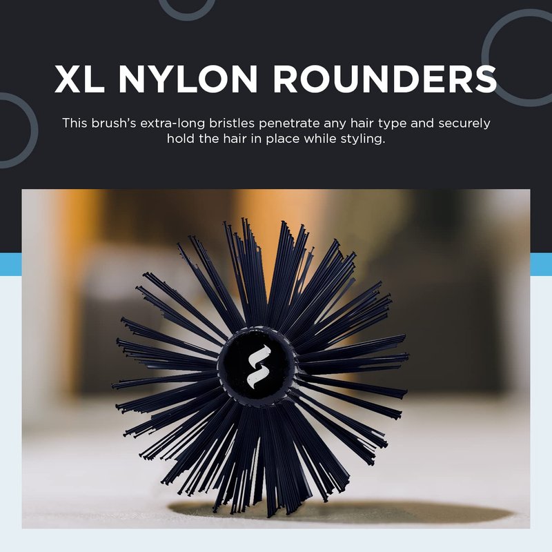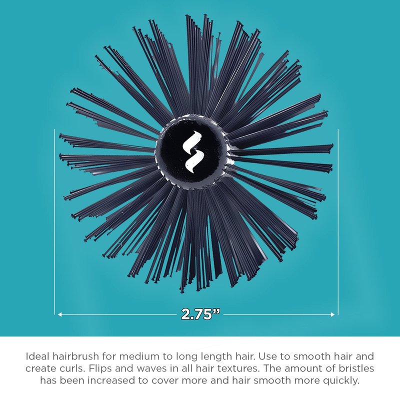 - Large 2.5 Inch Barrel - This Spornette Double Stranded XL Nylon 2 1/2 Inch Round Brush is the ideal hairbrush for medium to long length hair. Use to smooth hair and create curls, flips and waves in all hair textures. It has more bristles to cover more hair and quicker. The all nylon bristle brush works with the heat of a blow dryer to create loads of bounce and volume. Master salon-style straightening and smoothing for coarse, curly, or frizzy hair at home.