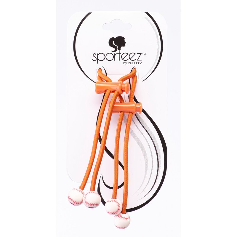 Sporteez "Double Play" Sliding Ponytail Holder - Baseball Charms - Dark Orange Elastic, Set of 2