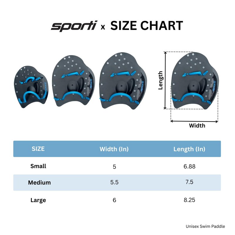 Experience the transformative power of swimming with our Sporti Power Swim Paddles. These hand paddles for swimming adult are designed to push your boundaries and help you achieve your swimming goals. With their unique design, they aid in building upper body strength, making every stroke count. Every swim becomes a robust workout, fueling your passion and drive for swimming. Our hand paddles are not just designed for power, but also for comfort. They come with an adjustable wide-area wrist and finger strap that ensures a custom fit for every hand, guaranteeing a secure grip and reduced strain during your swim. Whether you have small hands or larger ones, our swim paddles adjust to fit you perfectly. Sporti's swim paddles are constructed of durable, lightweight polypropylene, making them resilient and easy to handle. The paddles' small holes lessen resistance, ensuring that the tubing won't overpower your hands. This thoughtful design makes our swimming hand paddles suitable for both adults and kids and for all experience levels. If you have larger hands or a higher experience level, we recommend sizing up for optimal performance. These hand paddles for swimming adult are not only great for individual workouts but also for team training. With every stroke, you will feel the added resistance, providing an efficient workout and improving your technique. One order comes with 2 paddles and adjustable tubing, offering you a complete set for your swimming journey. Start your transformation today with Sporti Power Swim Paddles. They are more than just hand paddles for swimming; they are your companions in your journey toward swimming excellence.