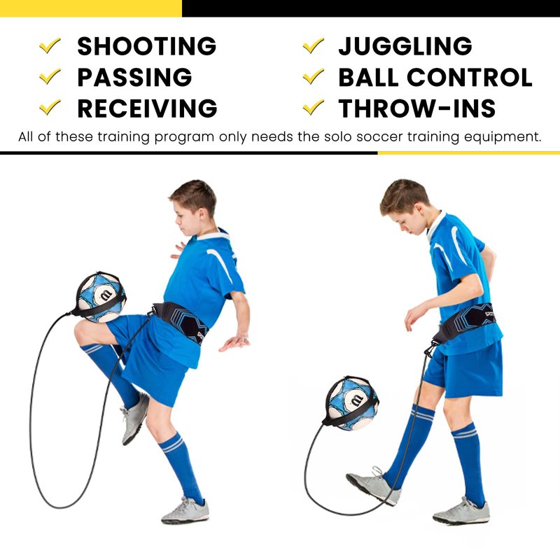 √ Sportout solo soccer/volleyball kick trainer. Offering efficient solo soccer training that improves shooting, passing, receiving, juggling, throw-ins and more. √ Allows players to maximize the number of touches on the ball, and reduce the time of chasing the ball √ Can be used anywhere for solo play, training, or practice anywhere. √ Ball sleeve and belt turns the football into a solo kick and return trainer. √ A neoprene belt with an adjustable hook and loop closure fits most athletes. √ Fits football size #3, #4, and #5 soccer balls (ball not included).