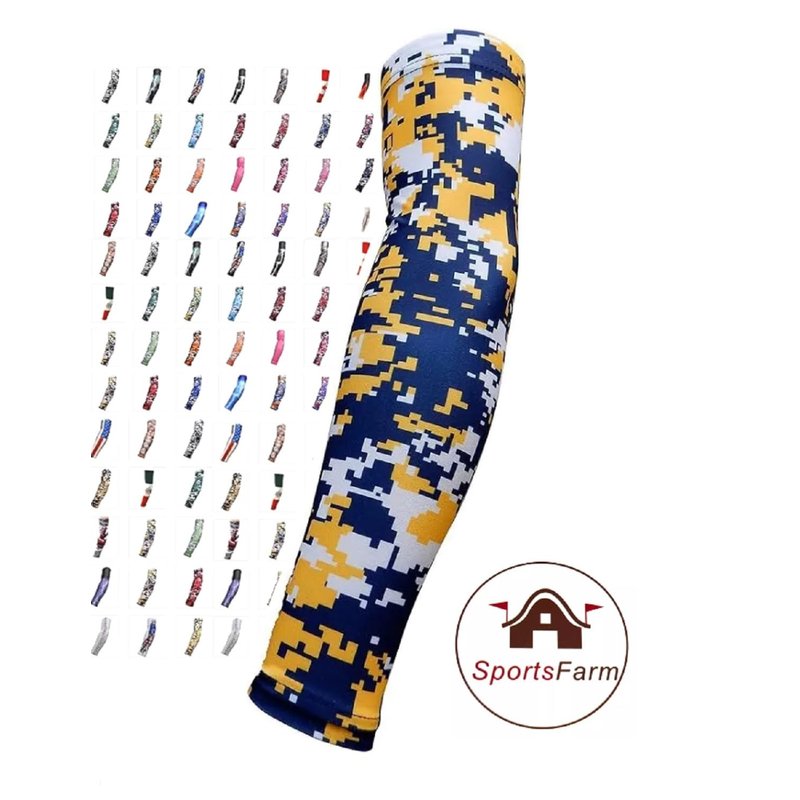 -New Pair Arm Sleeves / Choose Your Color -Sleeves are made of a Polyester / Lycra Blend -Each sleeve has a non slip material on the inside above the bicep to keep in place -Perfect for any sport! -Typically these sleeves will match your t shirt size