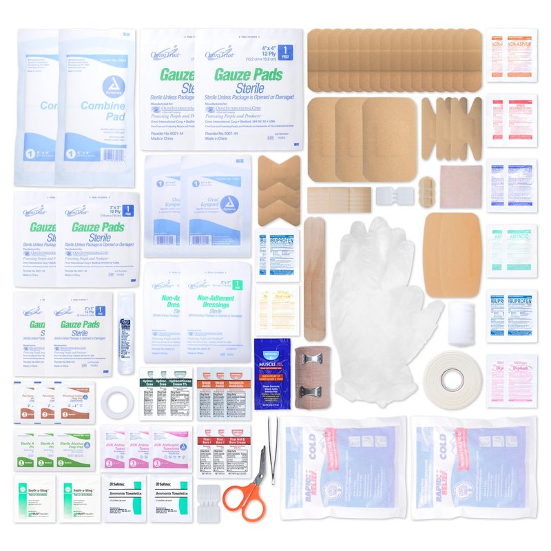 Step up your game on the playing field with our all-inclusive 73-piece sports first aid refill pack. This kit is the perfect companion for your sports first aid kits, duffel bags, and tackle type boxes, ensuring you're always prepared for any unexpected incidents. The pack is Roll 2 Inch 1 Elastic Bandage 3 Inch 5 Junior Bandages 3 Spot Bandages 16 Fabric Bandages 1 x 3 7 Butterfly Closures 3 Fingertip Bandages 3 Knuckle Bandages 3 Patch Bandages 2 Non Aspirin Extra Packets 2 Antacid Packets 2 Diphen Packets 4 Ibuprofen Packets 2 Pain Relief Packets 2 Sinus Relief Packets 2 Oval Eye Pads 1 Adhesive Tape 1/2 Inch 2 Pads 2 x 2 2 Pads 3 x 3 2 Pads 4 x 4 2 Combine Pads 5 x 9 2 Non Adhering Pads 2 x 3 3 Alcohol Prep Pads 3 Antiseptic Wipes 3 First Aid Burn Packets 3 Hydrocortisone Packets 3 Antibiotic Packets 3 PVP Prep Pads 1 Athletic Tape 1.5 Inch 1 Moleskin Patch 2 x 2 2 XL Fabric Bandages 2 Electrolyte Packets 1 Muscle Gel Packet 2 Tongue Depressors
