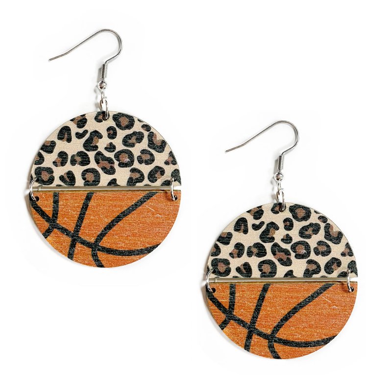 Sports Game Ball Football Basketball Wooden Leopard Print Drop Earrings for Women Holiday Round Baseball Soccer Volleyball Dangle Earrings Fans Players Jewelry-Basketball