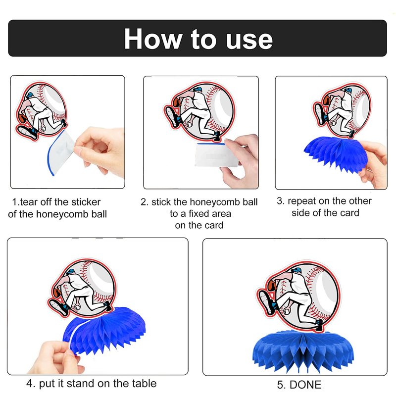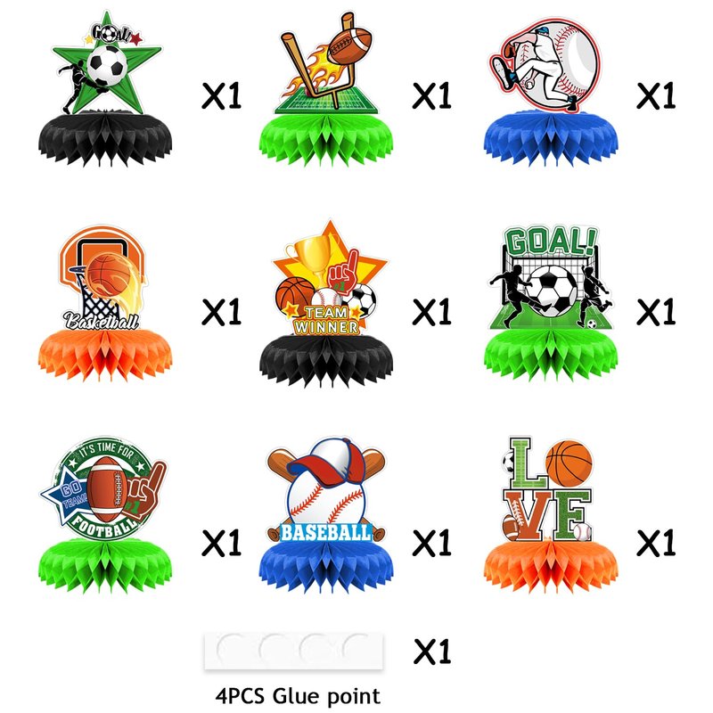 - ⚾【Easy to Assemble】: using these sports table centerpieces for tables is rather simple, you just need to tear off the sticker of the honeycomb centerpiece, stick on the fixed area of the card, and stick another honeycomb centerpiece on the other side of the card for a charming centerpiece.