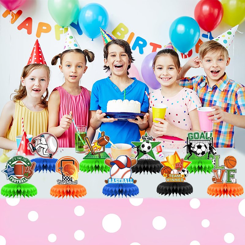 ★1. This sports theme honeycomb is perfect for retro kid party centerpiece decor. A variety of spa themed patterns to easily meet your expectations. Make your party more lively.