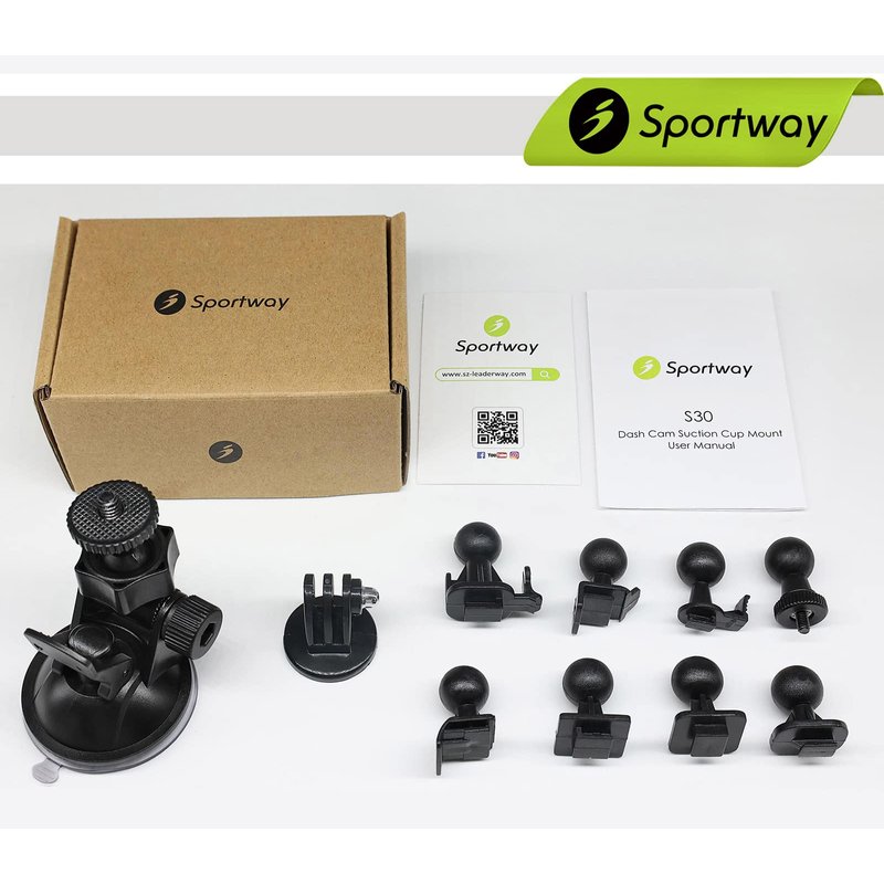 Sportway S30 Dash Cam Suction Mount (2nd Gen) with 10pcs Joints for REXING,Z-Edge,Old Shark,YI,KDLINKS,Falcon Zero,Transcend,Crosstour,VANTRUE,GoPro Hero and Most Other Dash Cameras DVR GPS