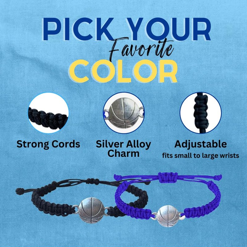 - Basketball Bracelet w/ Color Scheme- Choose a color that resonates w/ you. This bracelets have a braided cords weaved together w/ basketball charm & will stand up to daily use & last for a long time.