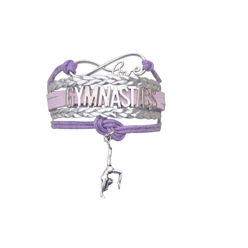 SportyBella Gymnastics Bracelets For Girls- Adjustable Charm Bracelet w/Infinity Symbol & Silver Gymnastic Charm. Gymnastics Friendship Bracelet Gifts for Gymnasts, Teams & Coaches. (Purple/Silver)