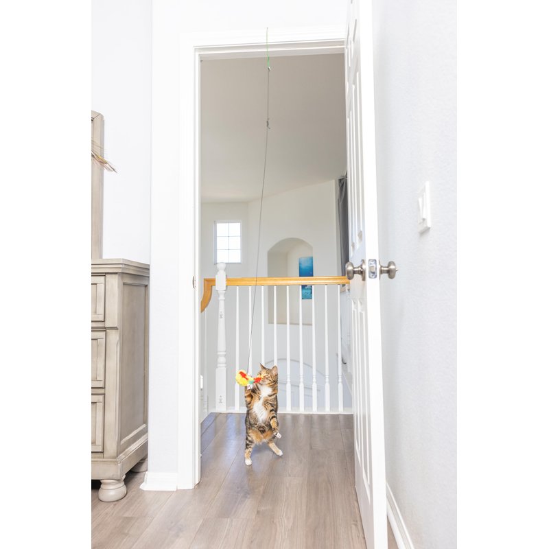 - EASY SET UP: To use, simply clip hanger on door frame and watch your cat play with this ingeniously fun cat toy