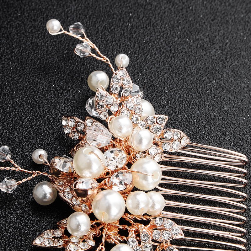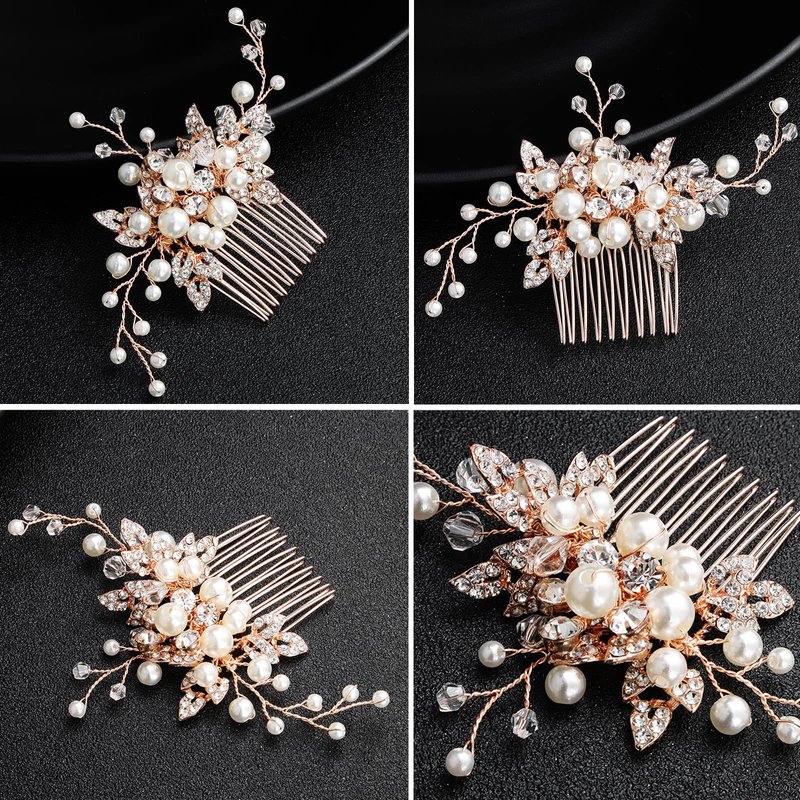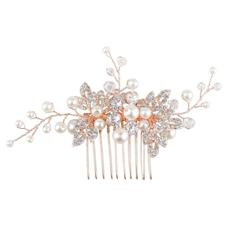 Sppry Bridal Hair Comb - Bendable Pearl Crystal Hair Accessory for Women at Wedding, Rose Gold