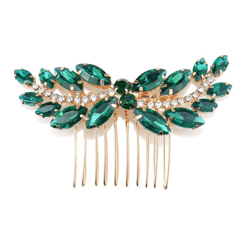 Sppry Rhinestone Hair Comb - Sparkly Hair Accessory for Bridal Women in Wedding Party(Green-Gold)