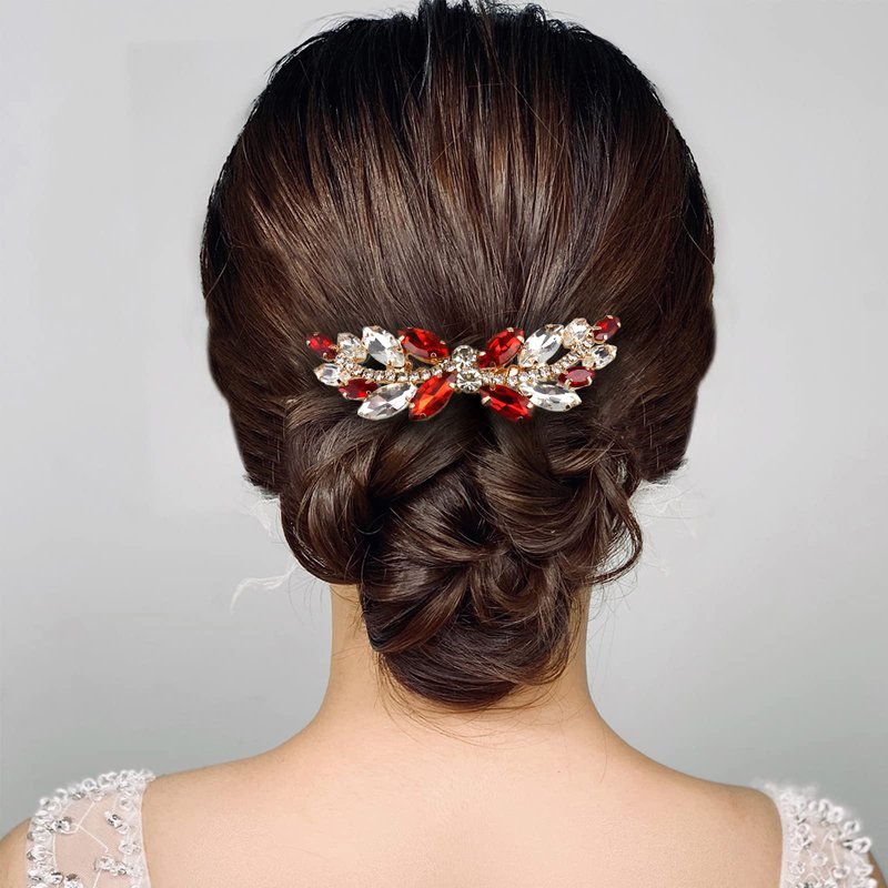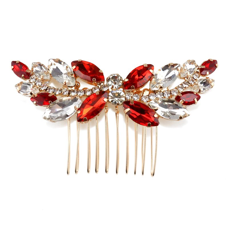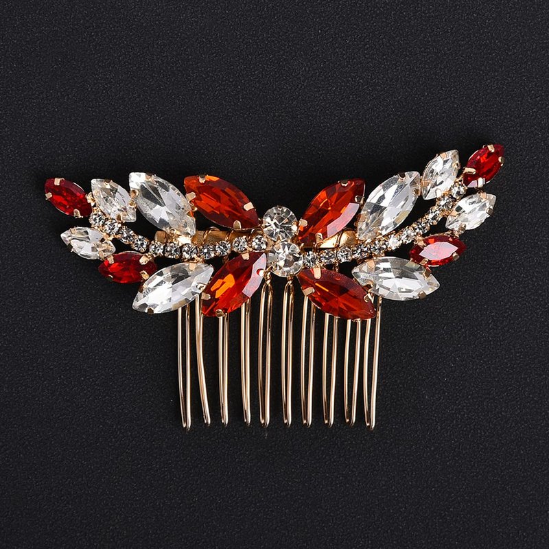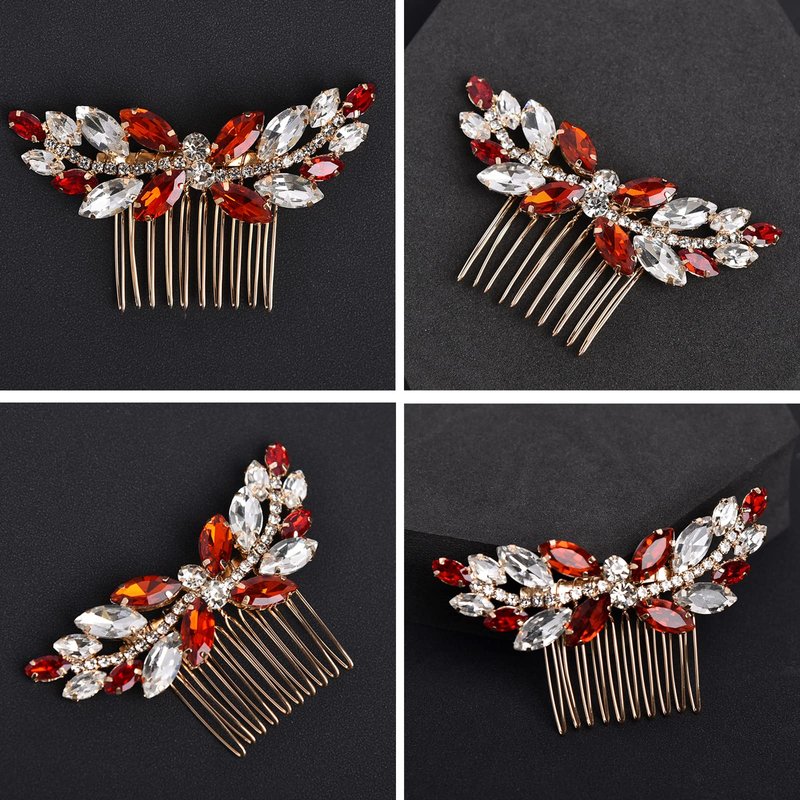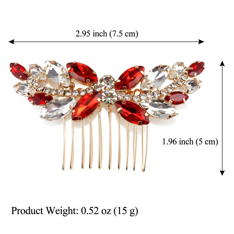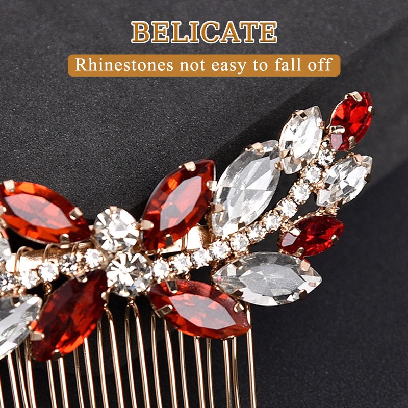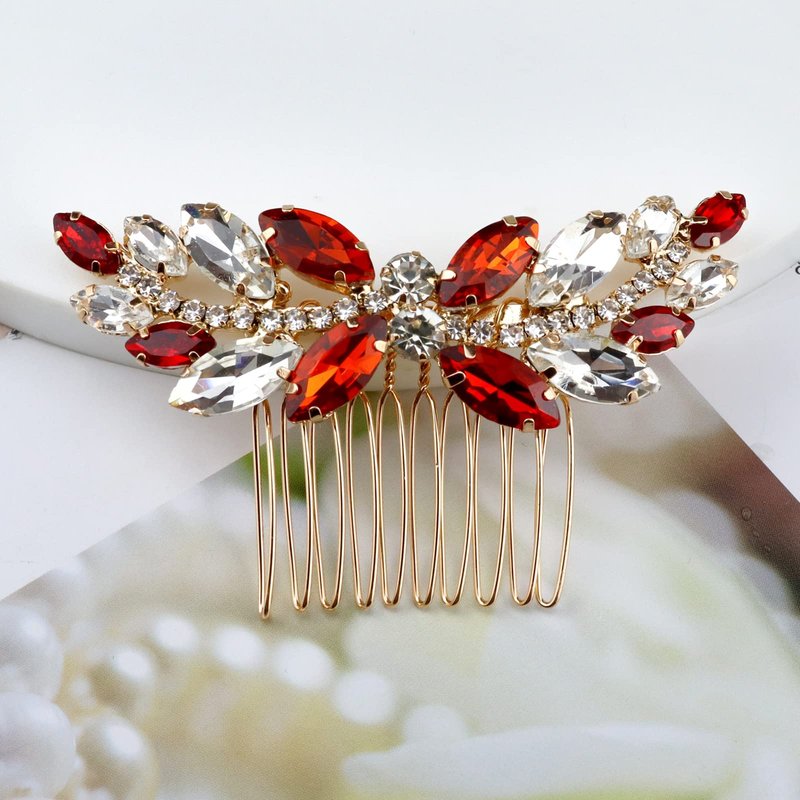 Sppry Rhinestone Hair Comb - Sparkly Hair Accessory for Bridal Women in Wedding Party(Red-Gold)