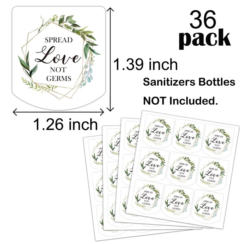 - Includes: 36 spread love not germs hand sanitizer labels. Sanitizers bottles NOT included.
