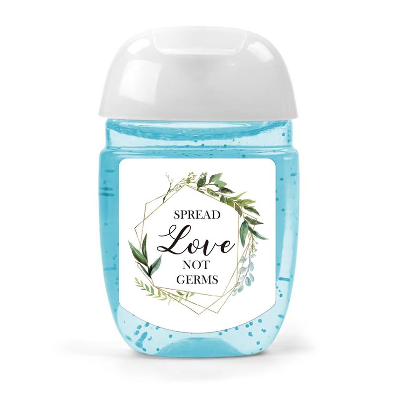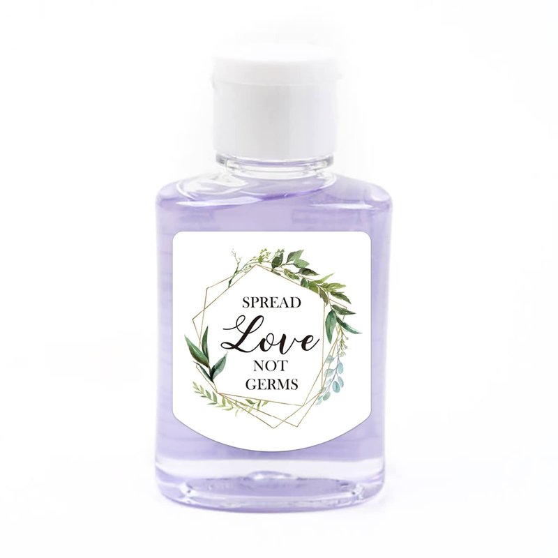 - Greenery spread love not germs sticker is perfect for thank you wedding favor. Also can use for birthday, party, anniversary to celebrate. Add labels to your own mini sanitizer bottles for an excellent guest gift.