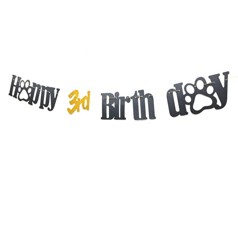 - Packing : 1 * Happy 3rd Birthday Dog Paw Party Banner Banner Sign Backdrop - Shining Black Pet Party Decorations for 3rd Birthdays Dog theme Birthday Decoration