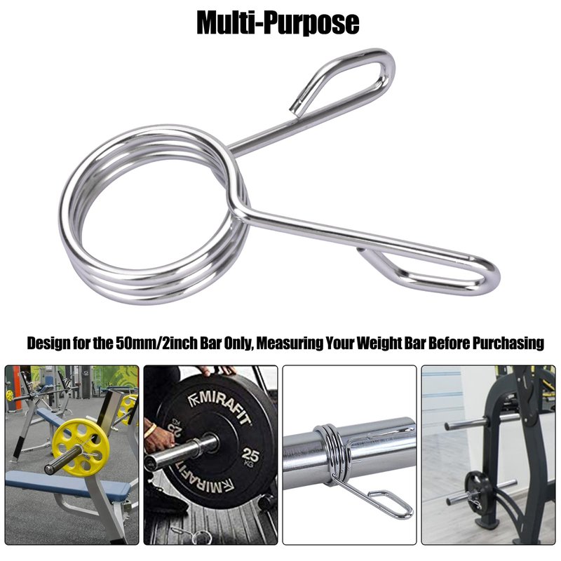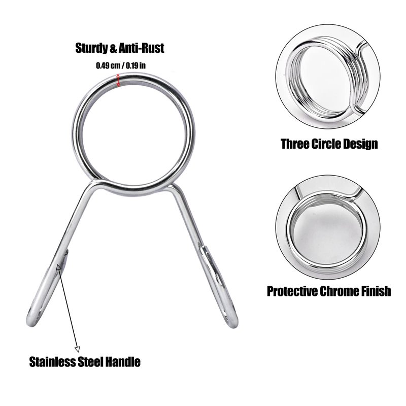 - Heavy Duty: Made of chrome-plated steel designed with 3 circle springs, the weight clips can hold weight plates in place to prevent sliding off or moving around from the barbell.
