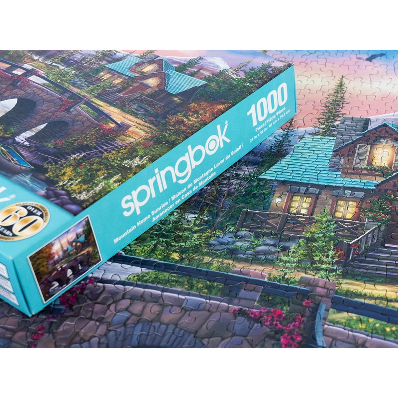 Springbok's Mountain Home Sunrise 1000 Piece Puzzle for Adults is a Soothing Image of a Mountain Cabin Retreat