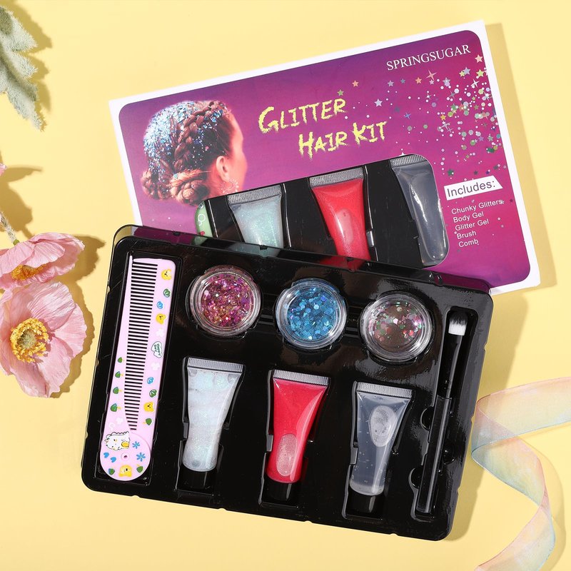 - Easy to Apply & Clean: The soft brush and comb make it simple to apply glitter to hair, face, or body with minimal mess. Cleanup is quick and easy with water, making it parent-approved fun!