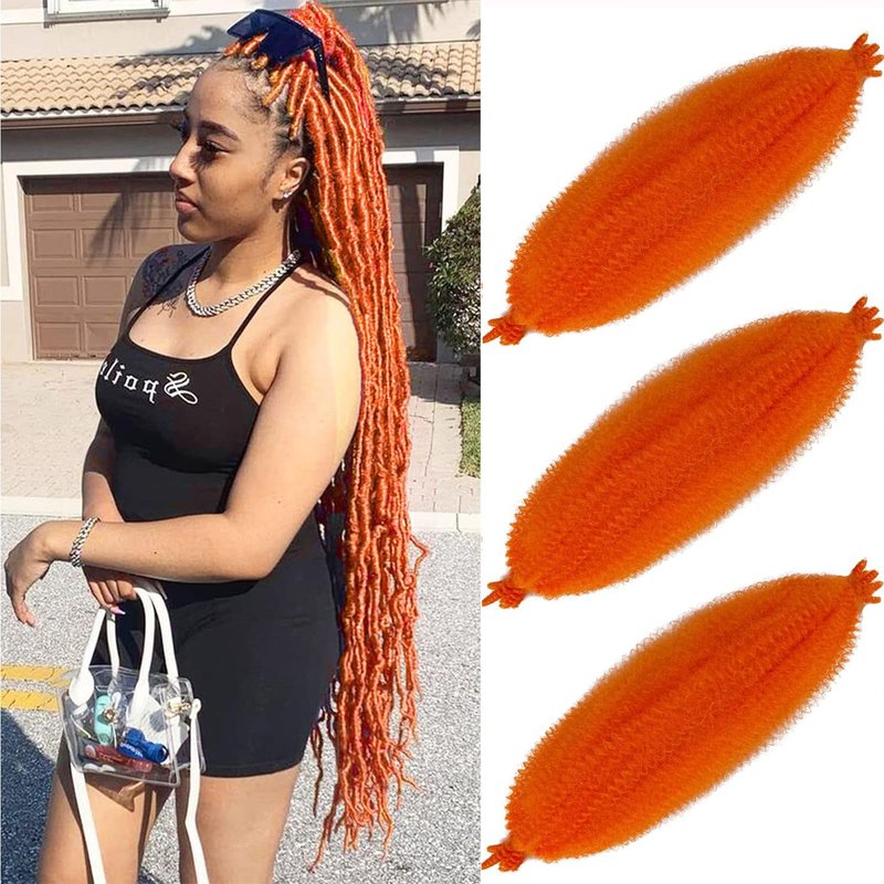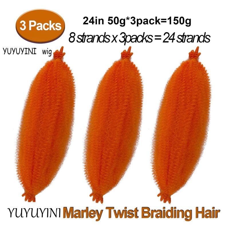 Springy Afro Twist Hair Pre-Separated Kinky Marley Twist Braiding Hair 3spacks Springy Twist for Distressed Faux Locs Synthetic Hair Extensions Cuban Twist Hair (24 inch,orange)
