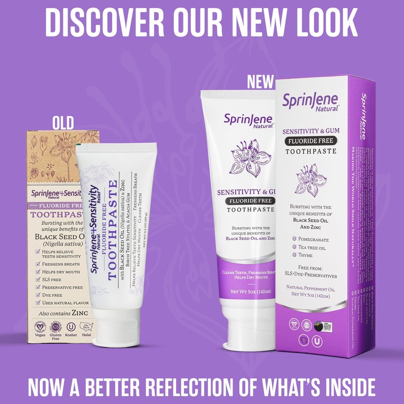 Say goodbye to boring and hello to a refreshing and natural brushing experience with SprinJene Natural Fluoride Free Toothpaste. Our formula is packed with all-natural ingredients like Black Seed Oil, Zinc, Birch Tree Xylitol, and Acacia Gum that not only clean and freshen your teeth, but also soothe dry mouth. With our patented Zinc and Blackseed Oil formula, this toothpaste naturally lubricates dry mouth, providing relief from discomfort related to dryness, such as painful skin chaps, cracks, and irritated gums. We understand the importance of oral hygiene and have crafted a toothpaste that is safe and effective for all. Unlike many other toothpastes, our formula is free from sodium lauryl sulfate (SLS), dyes, artificial sweeteners, preservatives, and animal by-products. This makes it the perfect choice for those with dietary restrictions, as our toothpaste is Gluten-Free, Vegan-Friendly, Kosher, and Halal sealed. Brush your way to a beautiful, healthy smile with SprinJene Natural Fluoride Free Toothpaste. With its natural ingredients and gentle cleansing properties, it's the perfect toothpaste for adults. Don't settle for anything less than the best, Order yours today and start your journey to better oral hygiene! orl bs sheffields flavor pastetooth arginine glycerin now twice toothpase toothlaste toothoaste toothaste toothpaate toothpste toothpate toopaste toothbpaste toothpasts tootpaste toothpsste toothpaster radius toothpasete toohpaste extra norland all pure vegan zendium unflavored tootbpaste toothepaste toothepast burt lauryl sulfate holistic vicco products tend flouride-free fluorimax gritty periopaste desensitizing pro hypoxyapatite tongue same day delivery smoker plus florident treatment gel xylitol toothpastes korean gums hsa approved black sores nha ollie mr bright reminerilizing adult mouth wash smile cavities smiles single oracare no mineralizing bamboo