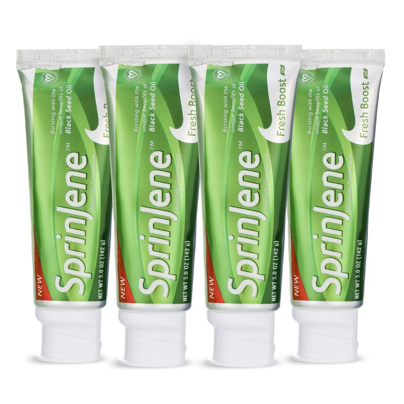 - GREAT TASTING AND EFFECTIVE FRESH BOOST: Boost your oral routine with SprinJene’s Fresh Boost patented black seed oil + zinc toothpaste. Tastes great and freshens breath! With fluoride to control the growth of tartar and plaque biofilms.
