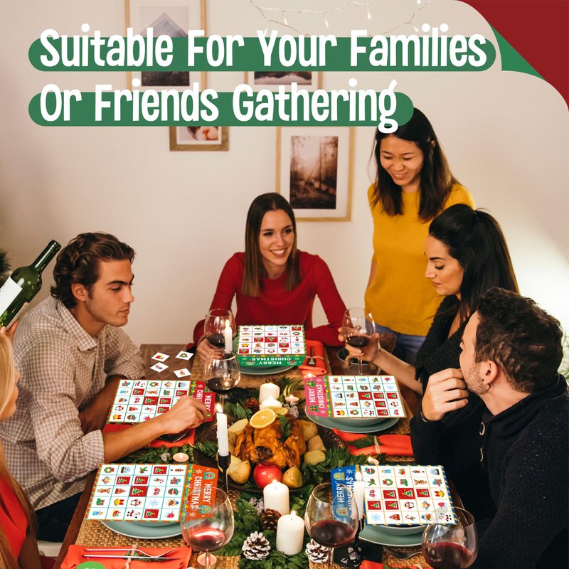 - Spread Holiday Cheer: Gather your loved ones for a festive game night with our Christmas Bingo! It's the perfect way to add a touch of holiday cheer to your family gatherings, office parties, or even a cozy night in. Get ready for laughter, friendly competition, and a whole lot of Christmas spirit!