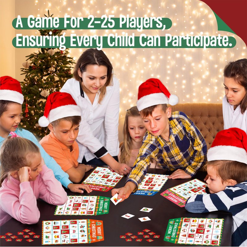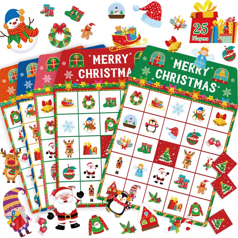 - Super Value Pack: With this Christmas bingo game set, you will get 25 different bingo boards, 504 bingo chips, 24 calling chips, 1 instruction cards. Ideal for multiplayer parties, it could meet the needs of your party up to 25 players, perfect for having a good time with friends, family and classmates.