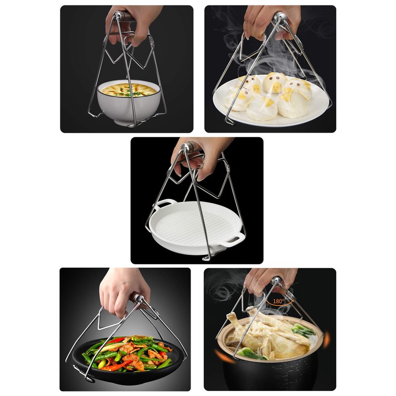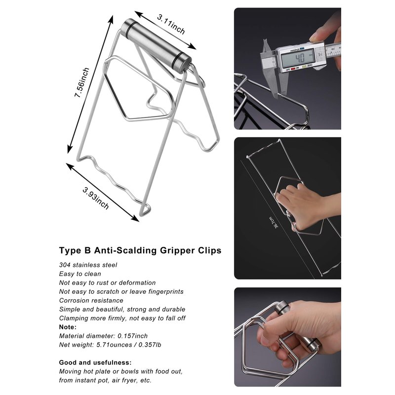 - 【Kitchen Anti-scalding Set Bowl Gripper Clip】Use plate gripper to safely clip out hot bowl disk plate tray or other hot container of any sizes and shapes for steamer pots, micro wave, oven, air fryer, boiling pots. B-type is stainless steel foldable disk palte bowl clip tong hot plate gripper,The combination of type B and type C is more convenient to use.