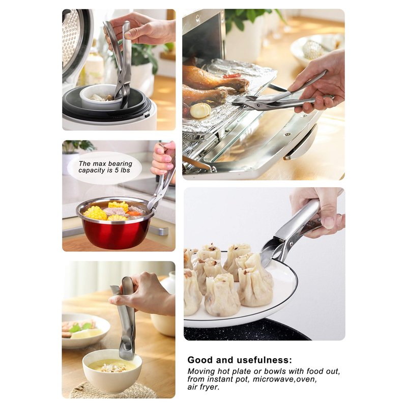 【Heat Insulated】The gripper clip tool is suitable for extracting tableware with heating food, or any shapes of food dispenser, such as flat plates, square plate, deep bowl, dishes, ceramic stew from hot pot microwave oven to serve the table easily.