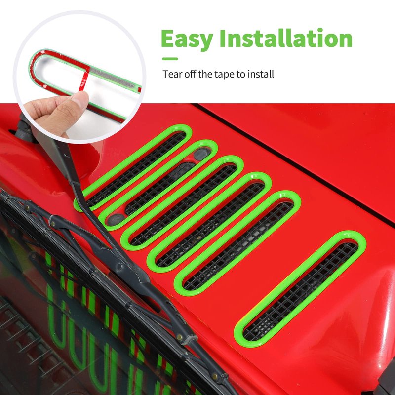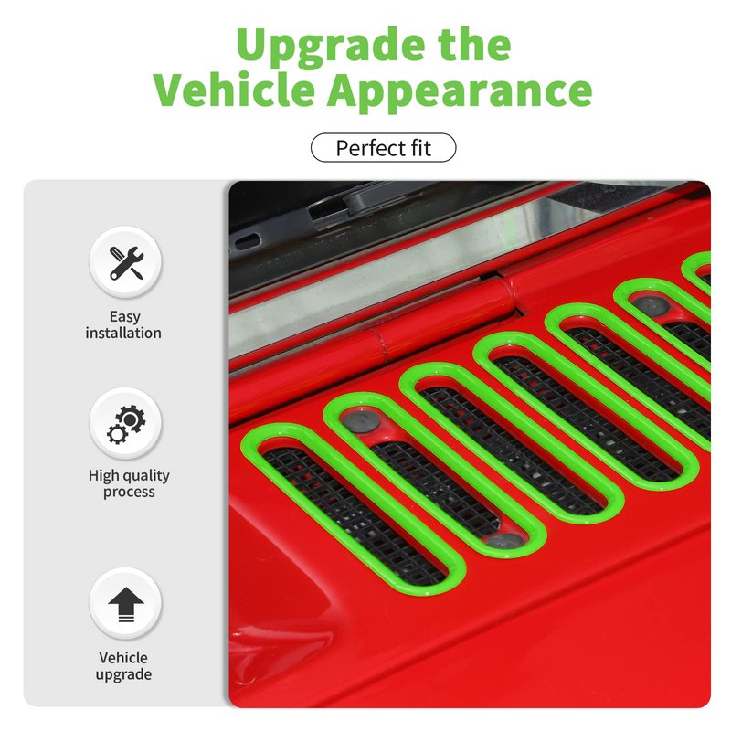 SQQP Hood Vent Cover Cowl Panel Vent Cover Trim, ABS Exterior Accessories for 2007-2018 Jeep Wrangler JK JKU 2/4-Door(Green)
